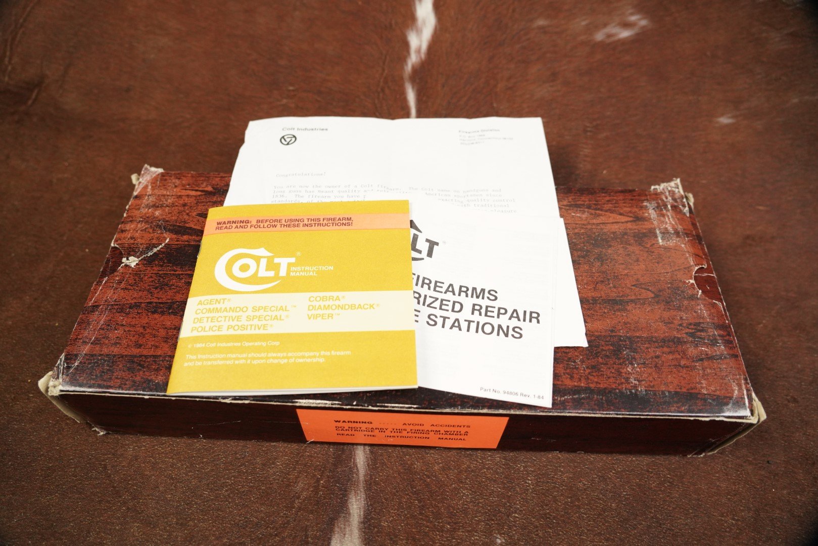 Included is a Colt factory cardboard box without an end label, along with original paperwork including the manual.